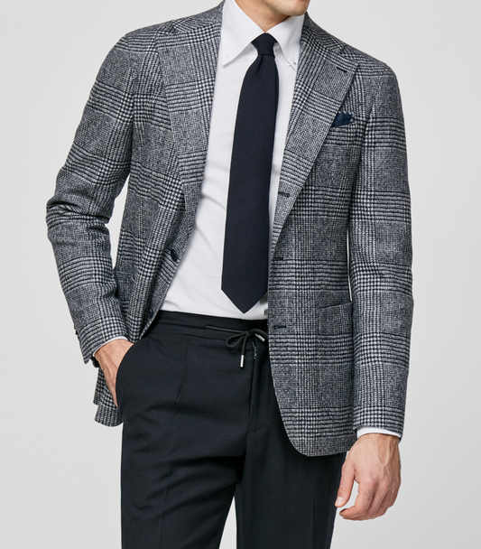 Grey & Dark Blue Glencheck Wool-Alpaca Jacket