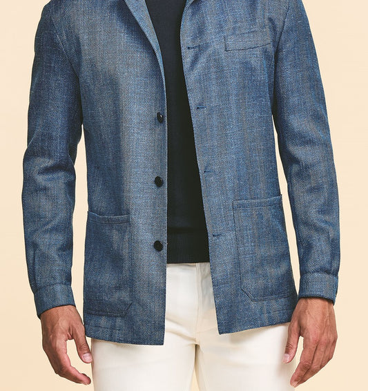 Denim Blue Pinstripe Bi-Stretch Wool Suit