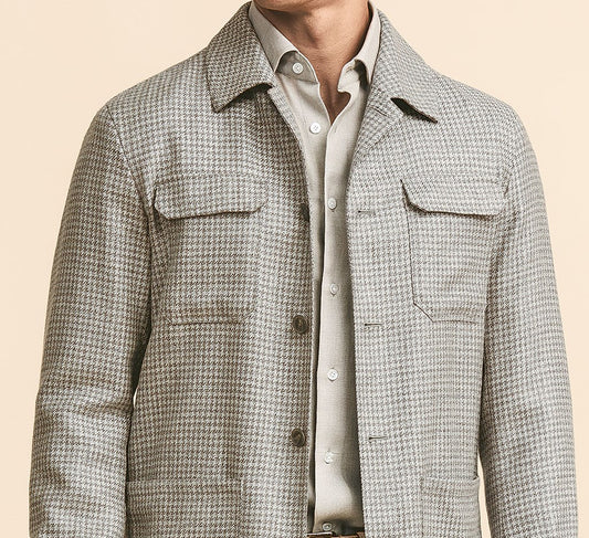 Taupe & Light Grey Houndstooth Shirt Jacket