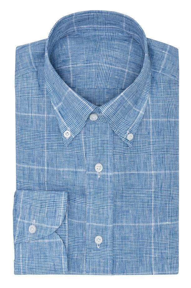 Cobalt Blue and White Glencheck Linen Shirt